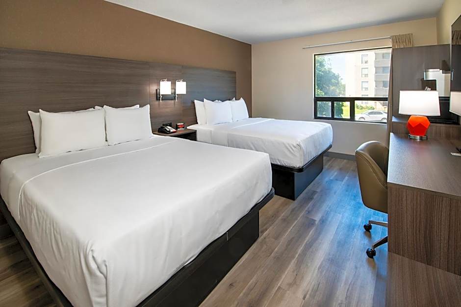 This family room has a tea and coffee maker, a seating area and a TV. The unit has 2 beds.